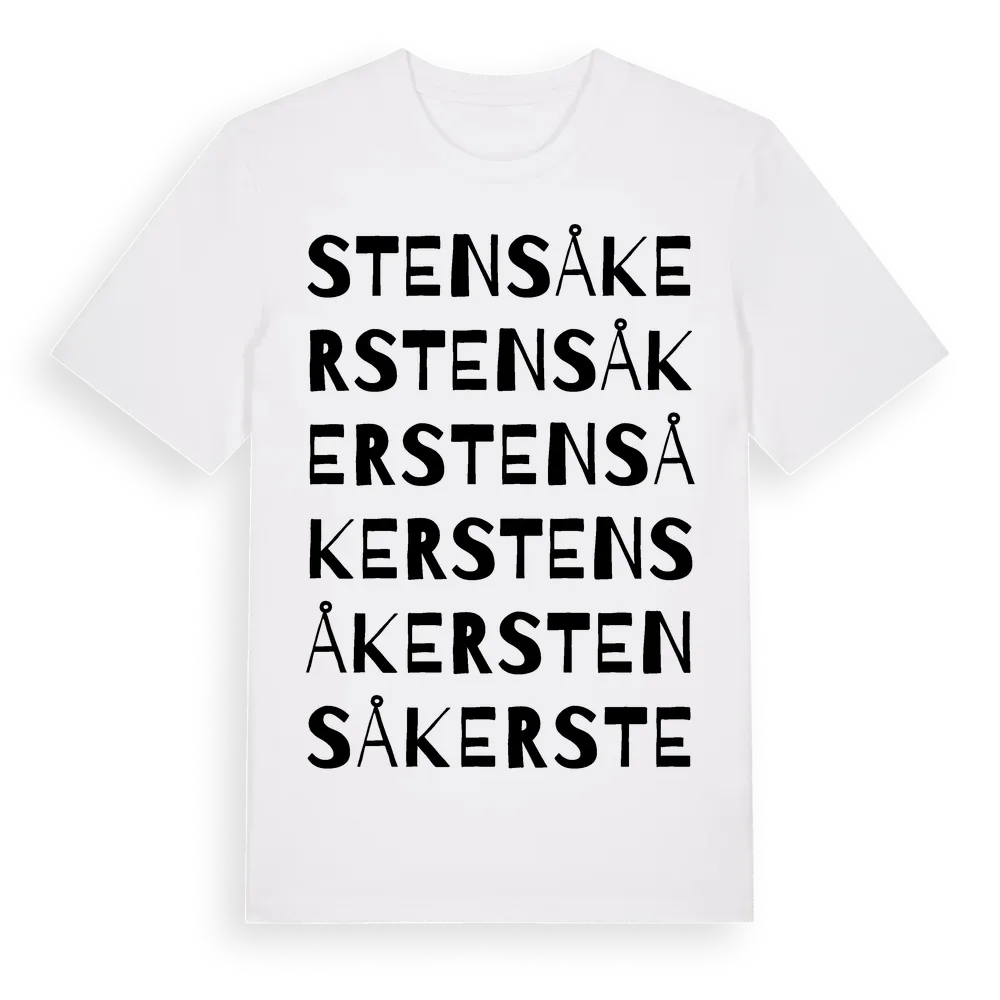 Stensåker ordlek t-shirt är inspirerad av Stensåker i Skåne län, Sverige. Tröjan är designad för dig som har en speciell koppling till platsen – oavsett om du bor här, har rötterna här eller bara älskar Stensåker.
