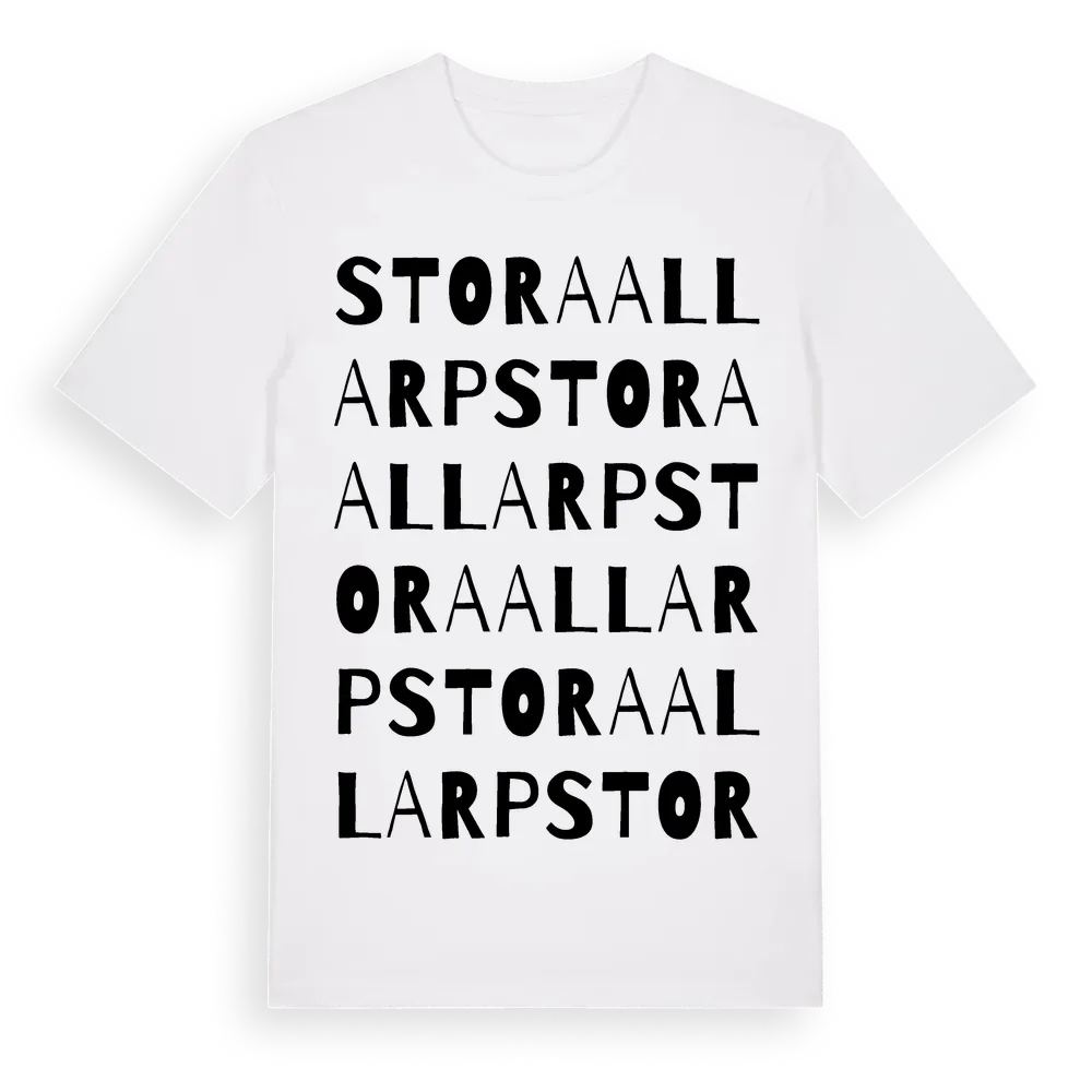 Stora Allarp ordlek t-shirt är inspirerad av Stora Allarp i Skåne län, Sverige. Tröjan är designad för dig som har en speciell koppling till platsen – oavsett om du bor här, har rötterna här eller bara älskar Stora Allarp.