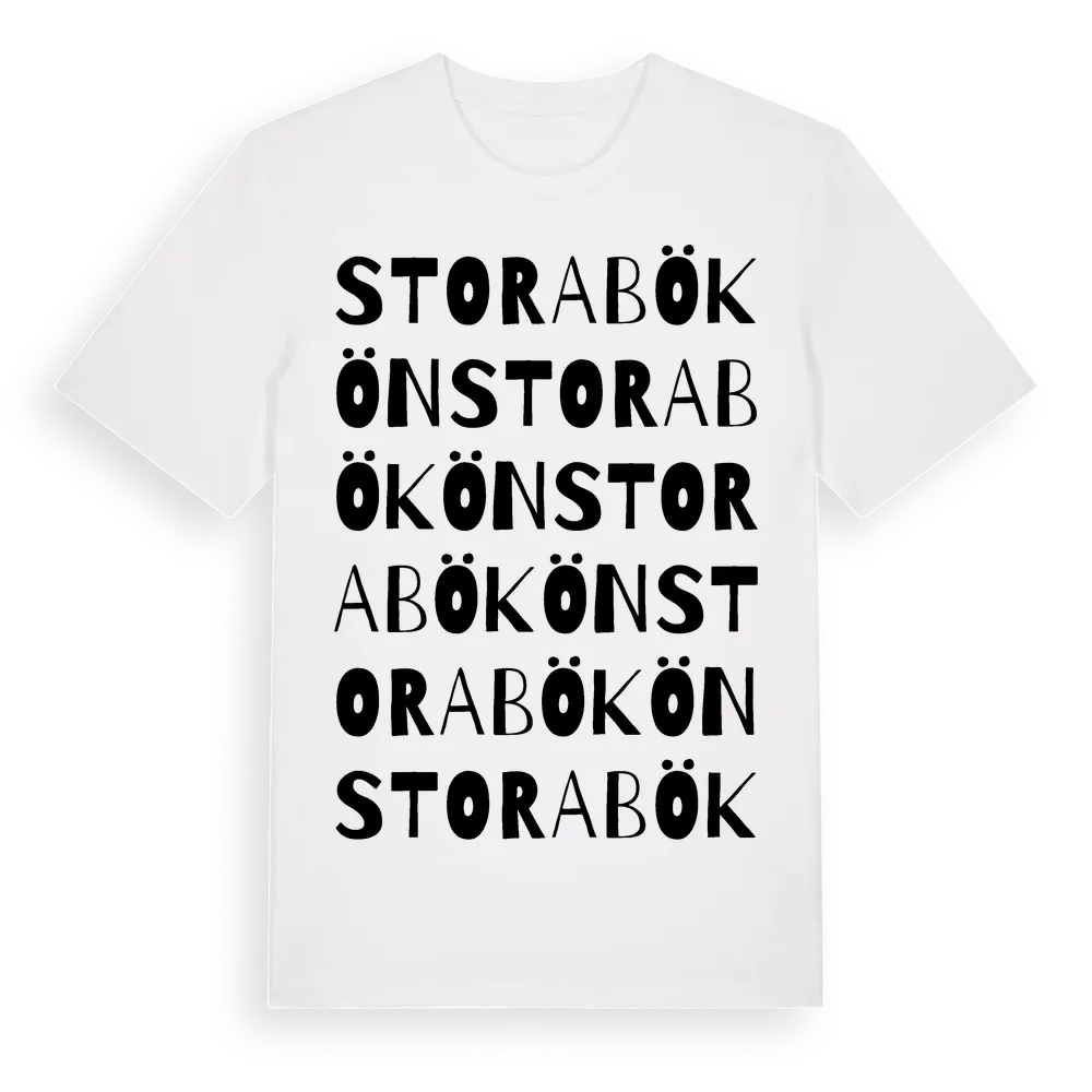 Stora Bökön ordlek t-shirt är inspirerad av byn Stora Bökön i Skåne län, Sverige. Tröjan är designad för dig som har en speciell koppling till platsen – oavsett om du bor här, har rötterna här eller bara älskar Stora Bökön.