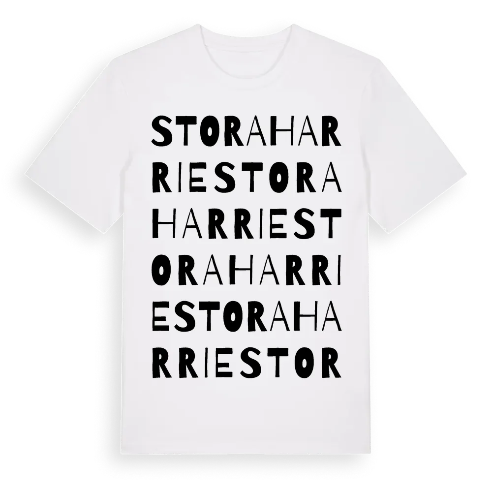 Stora Harrie ordlek t-shirt är inspirerad av byn Stora Harrie i Skåne län, Sverige. Tröjan är designad för dig som har en speciell koppling till platsen – oavsett om du bor här, har rötterna här eller bara älskar Stora Harrie.