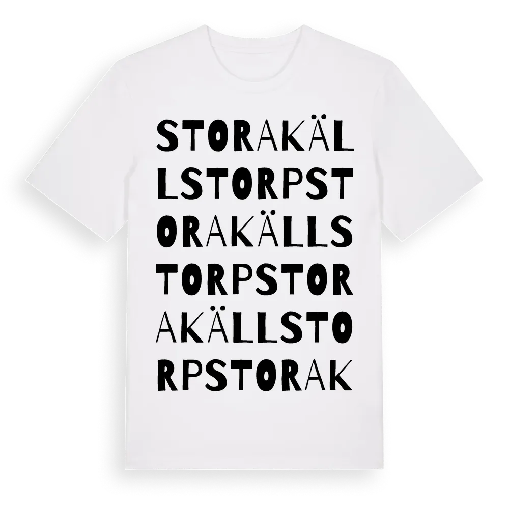 Stora Källstorp ordlek t-shirt är inspirerad av byn Stora Källstorp i Skåne län, Sverige. Tröjan är designad för dig som har en speciell koppling till platsen – oavsett om du bor här, har rötterna här eller bara älskar Stora Källstorp.