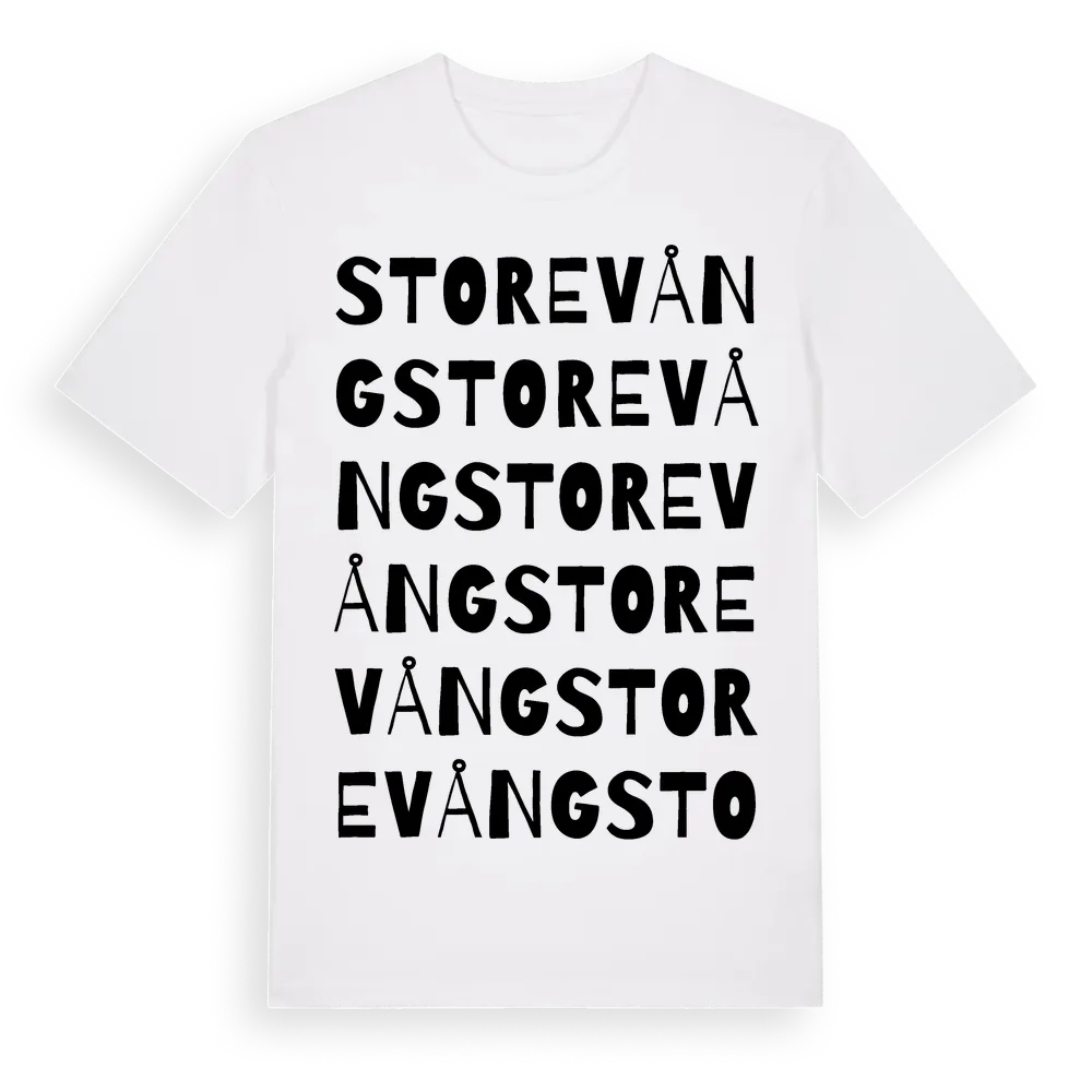 Storevång ordlek t-shirt är inspirerad av Storevång i Skåne län, Sverige. Tröjan är designad för dig som har en speciell koppling till platsen – oavsett om du bor här, har rötterna här eller bara älskar Storevång.