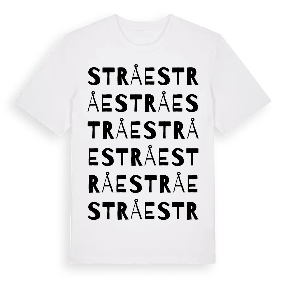 Stråe ordlek t-shirt är inspirerad av byn Stråe i Skåne län, Sverige. Tröjan är designad för dig som har en speciell koppling till platsen – oavsett om du bor här, har rötterna här eller bara älskar Stråe.