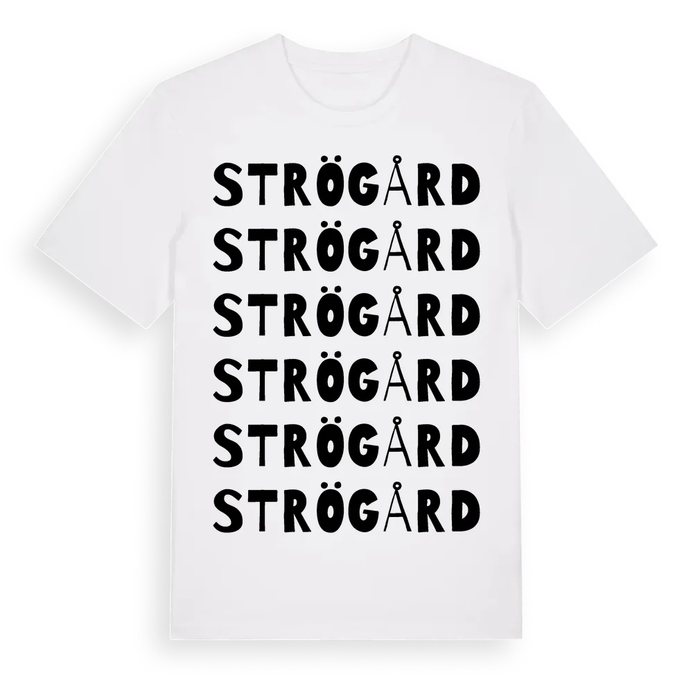 Strö Gård ordlek t-shirt är inspirerad av Strö Gård i Skåne län, Sverige. Tröjan är designad för dig som har en speciell koppling till platsen – oavsett om du bor här, har rötterna här eller bara älskar Strö Gård.