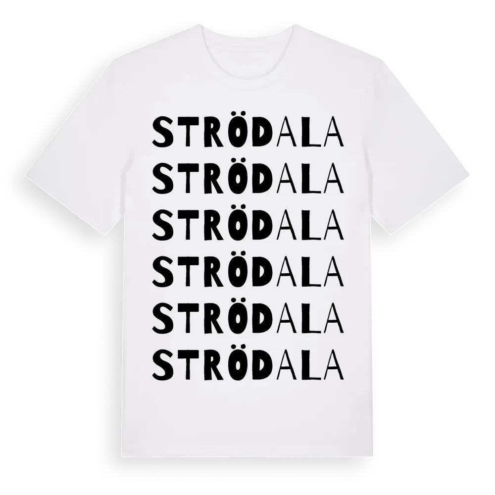 Strödala ordlek t-shirt är inspirerad av Strödala i Skåne län, Sverige. Tröjan är designad för dig som har en speciell koppling till platsen – oavsett om du bor här, har rötterna här eller bara älskar Strödala.
