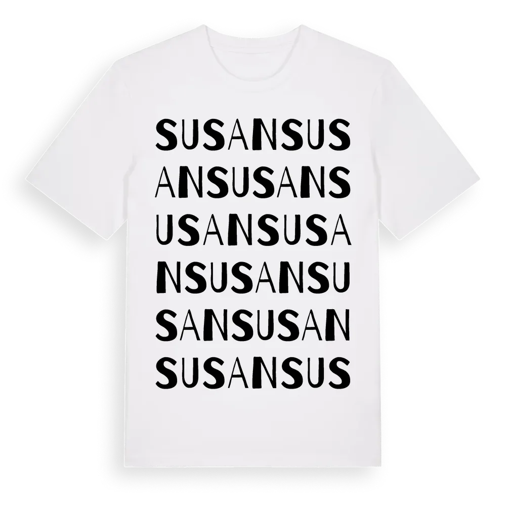 En ordlek byggd på Susans namn. Subtilt och klurig – ett motiv som bara de som verkligen känner platsen fullt ut förstår. Premium bomull, unisex – från byn Susan i Skåne län.