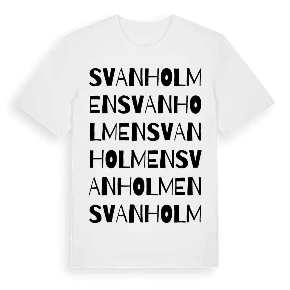 Svanholmen ordlek t-shirt är inspirerad av Svanholmen i Skåne län, Sverige. Tröjan är designad för dig som har en speciell koppling till platsen – oavsett om du bor här, har rötterna här eller bara älskar Svanholmen.