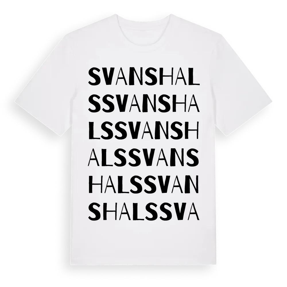 Svanshals ordlek t-shirt är inspirerad av byn Svanshals i Skåne län, Sverige. Tröjan är designad för dig som har en speciell koppling till platsen – oavsett om du bor här, har rötterna här eller bara älskar Svanshals.