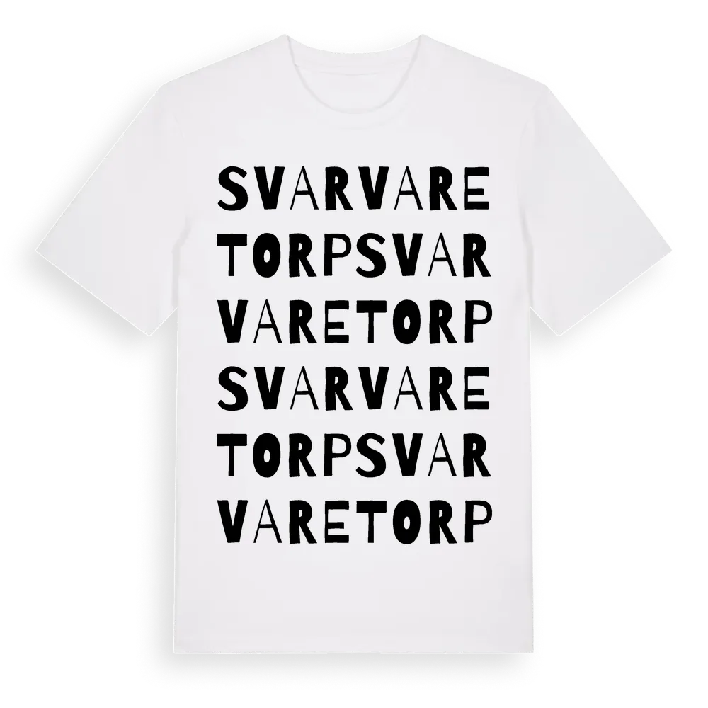 Svarvaretorp ordlek t-shirt är inspirerad av Svarvaretorp i Skåne län, Sverige. Tröjan är designad för dig som har en speciell koppling till platsen – oavsett om du bor här, har rötterna här eller bara älskar Svarvaretorp.