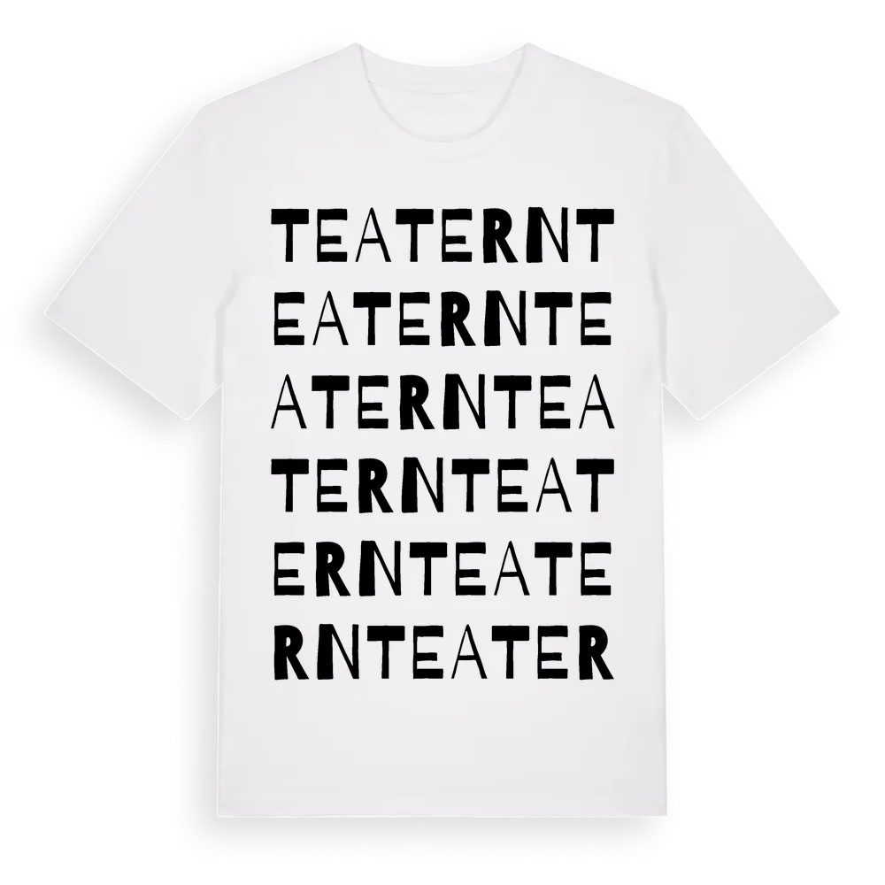 En ordlek byggd på Teaterns namn. Subtilt och klurig – ett motiv som bara de som verkligen känner platsen fullt ut förstår. Premium bomull, unisex – från stadsdelen Teatern i Skåne län.