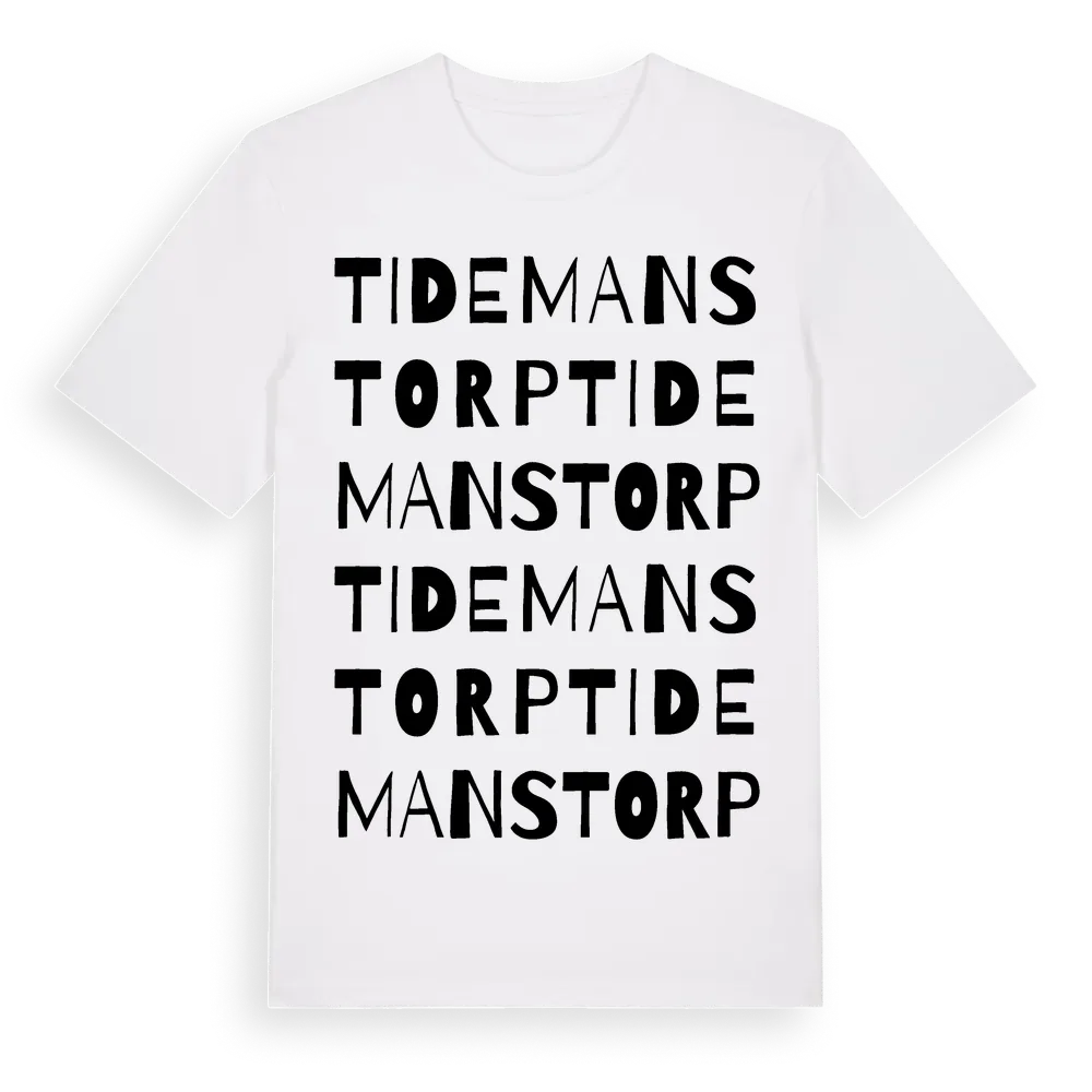 En ordlek byggd på Tidemanstorps namn. Subtilt och klurig – ett motiv som bara de som verkligen känner platsen fullt ut förstår. Premium bomull, unisex – från byn Tidemanstorp i Skåne län.
