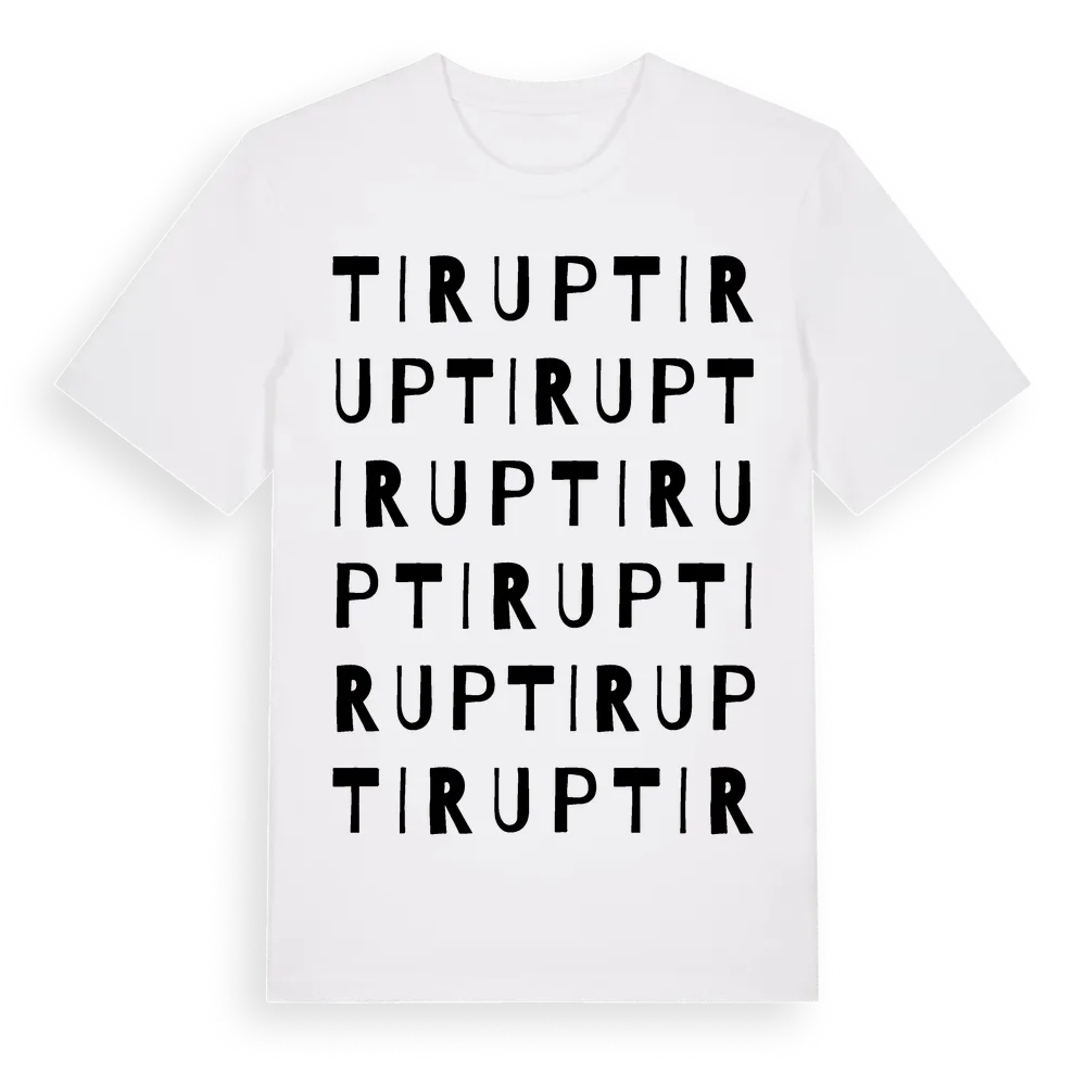 En ordlek byggd på Tirups namn. Subtilt och klurig – ett motiv som bara de som verkligen känner platsen fullt ut förstår. Premium bomull, unisex – från byn Tirup i Skåne län.