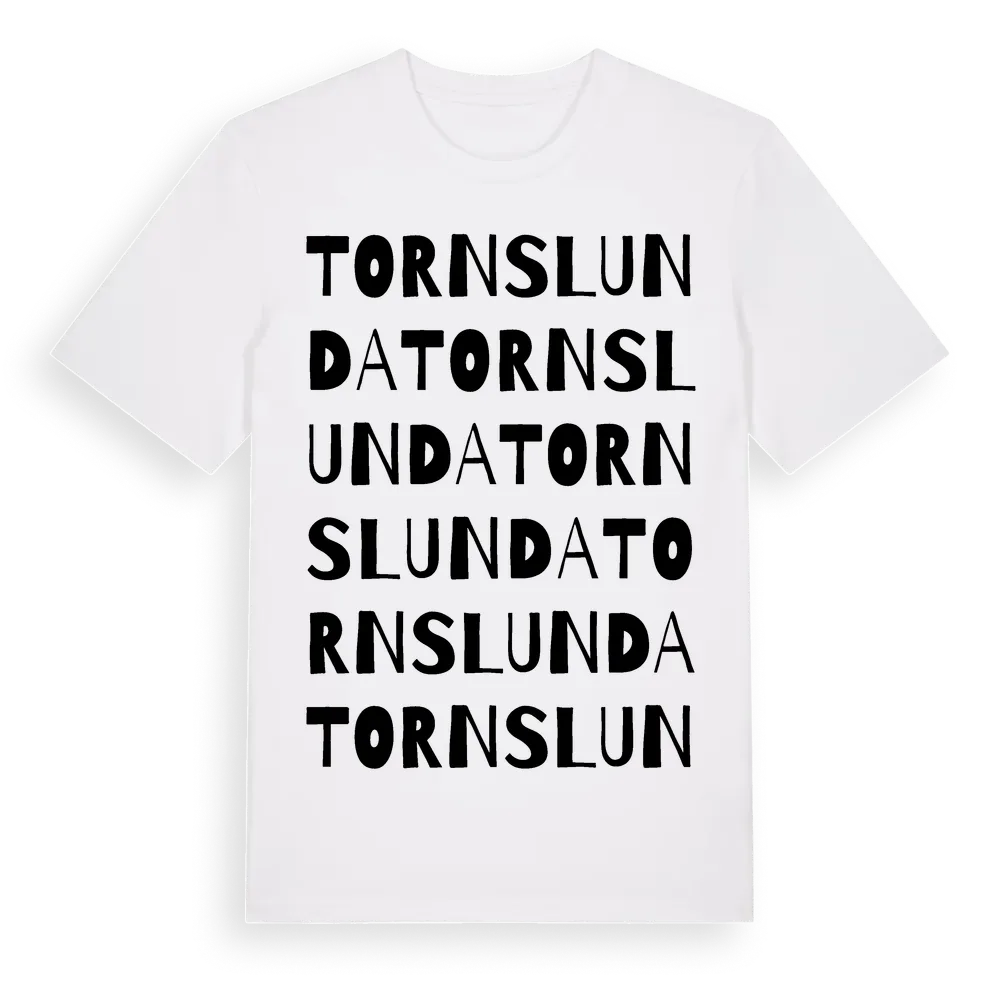 Tornslunda ordlek t-shirt är inspirerad av Tornslunda i Skåne län, Sverige. Tröjan är designad för dig som har en speciell koppling till platsen – oavsett om du bor här, har rötterna här eller bara älskar Tornslunda.