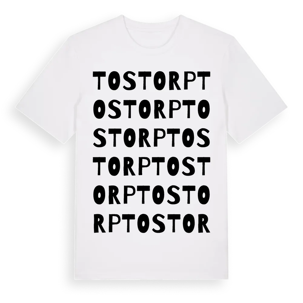 Tostorp ordlek t-shirt är inspirerad av byn Tostorp i Skåne län, Sverige. Tröjan är designad för dig som har en speciell koppling till platsen – oavsett om du bor här, har rötterna här eller bara älskar Tostorp.