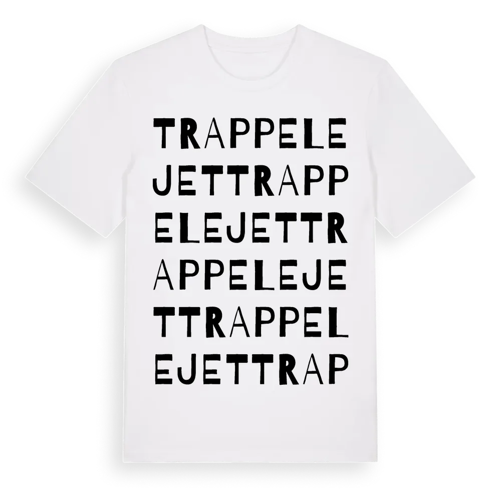 Trappelejet ordlek t-shirt är inspirerad av Trappelejet i Skåne län, Sverige. Tröjan är designad för dig som har en speciell koppling till platsen – oavsett om du bor här, har rötterna här eller bara älskar Trappelejet.