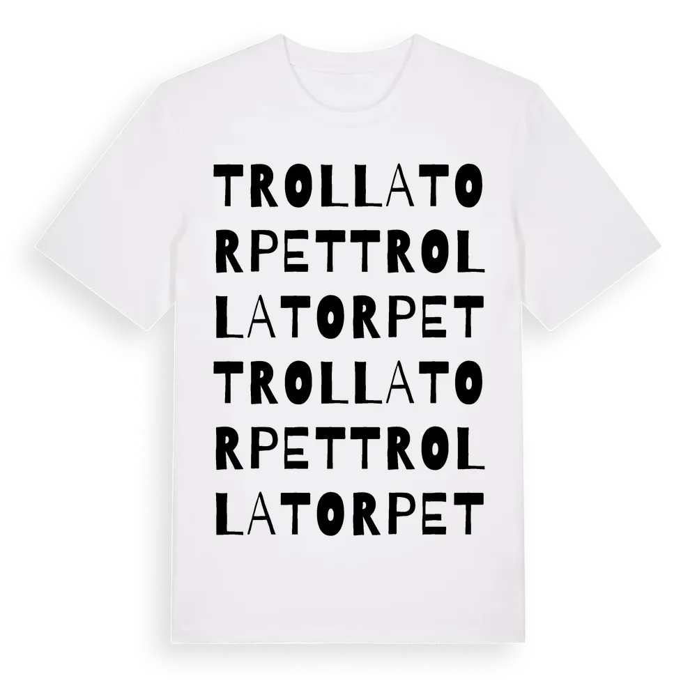 Trollatorpet ordlek t-shirt är inspirerad av Trollatorpet i Skåne län, Sverige. Tröjan är designad för dig som har en speciell koppling till platsen – oavsett om du bor här, har rötterna här eller bara älskar Trollatorpet.