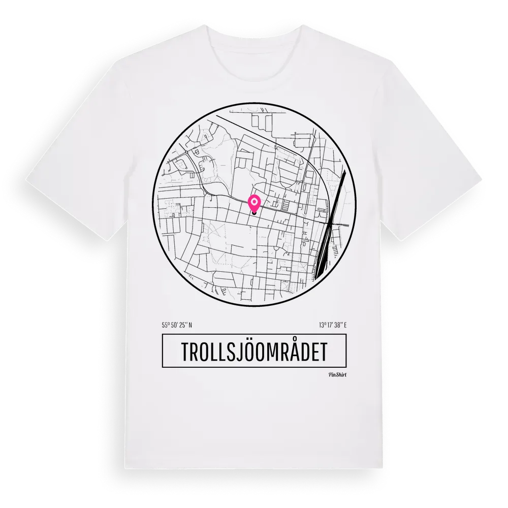 Trollsjöområdet t-shirt är inspirerad av stadsdelen Trollsjöområdet i Skåne län, Sverige. Tröjan är designad för dig som har en speciell koppling till platsen – oavsett om du bor här, har rötterna här eller bara älskar Trollsjöområdet.