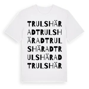 Trulshärad är en by i Skåne län, Sverige. Våra t-shirts med motiv från Trulshärad är designade för dig som har en speciell koppling till platsen – oavsett om du bor här, har rötterna här eller bara älskar Trulshärad.