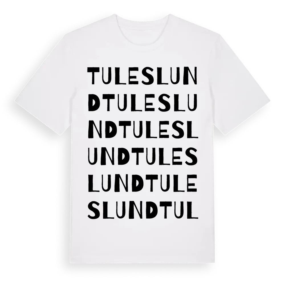 Tuleslund ordlek t-shirt är inspirerad av byn Tuleslund i Skåne län, Sverige. Tröjan är designad för dig som har en speciell koppling till platsen – oavsett om du bor här, har rötterna här eller bara älskar Tuleslund.
