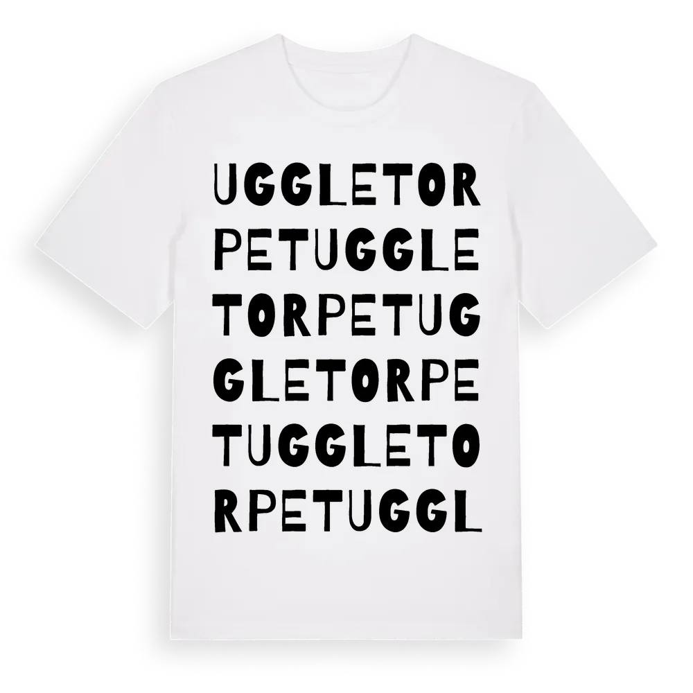 Uggletorpet ordlek t-shirt är inspirerad av Uggletorpet i Skåne län, Sverige. Tröjan är designad för dig som har en speciell koppling till platsen – oavsett om du bor här, har rötterna här eller bara älskar Uggletorpet.