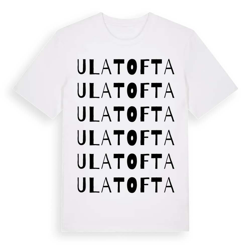 Ulatofta ordlek t-shirt är inspirerad av byn Ulatofta i Skåne län, Sverige. Tröjan är designad för dig som har en speciell koppling till platsen – oavsett om du bor här, har rötterna här eller bara älskar Ulatofta.