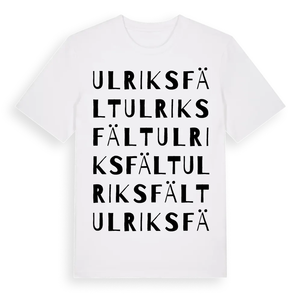 Ulriksfält ordlek t-shirt är inspirerad av Ulriksfält i Skåne län, Sverige. Tröjan är designad för dig som har en speciell koppling till platsen – oavsett om du bor här, har rötterna här eller bara älskar Ulriksfält.