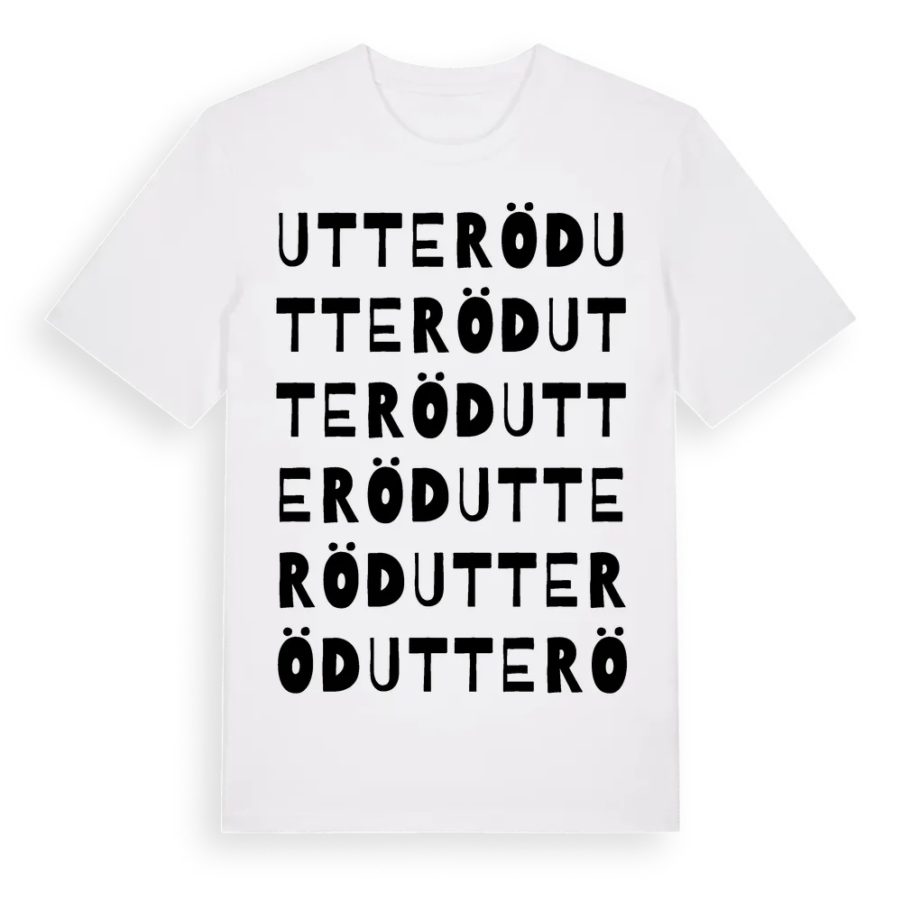 Utteröd ordlek t-shirt är inspirerad av byn Utteröd i Skåne län, Sverige. Tröjan är designad för dig som har en speciell koppling till platsen – oavsett om du bor här, har rötterna här eller bara älskar Utteröd.