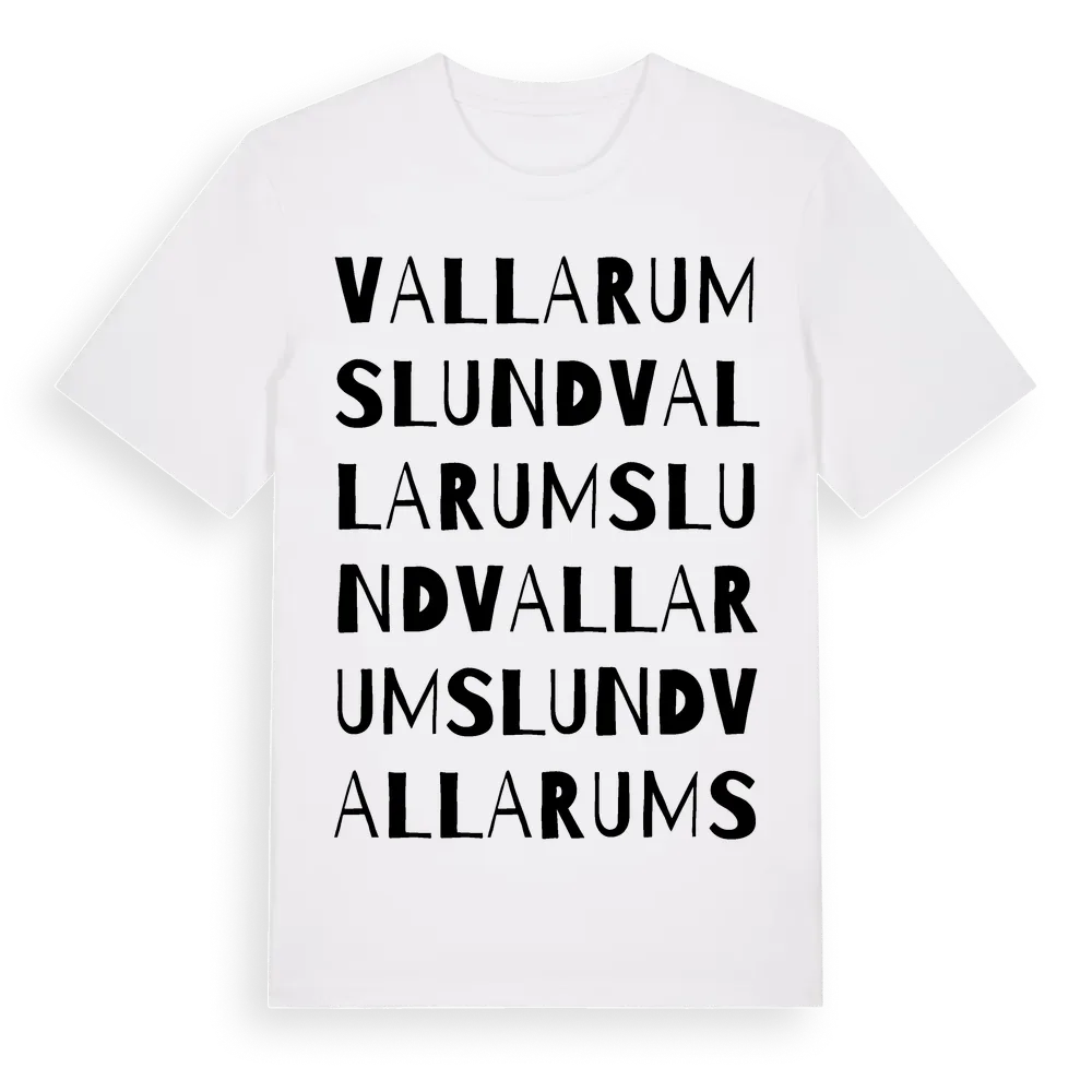 Vallarumslund ordlek t-shirt är inspirerad av Vallarumslund i Skåne län, Sverige. Tröjan är designad för dig som har en speciell koppling till platsen – oavsett om du bor här, har rötterna här eller bara älskar Vallarumslund.