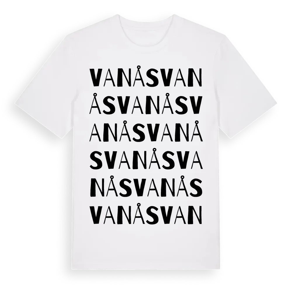 Vanås ordlek t-shirt är inspirerad av byn Vanås i Skåne län, Sverige. Tröjan är designad för dig som har en speciell koppling till platsen – oavsett om du bor här, har rötterna här eller bara älskar Vanås.
