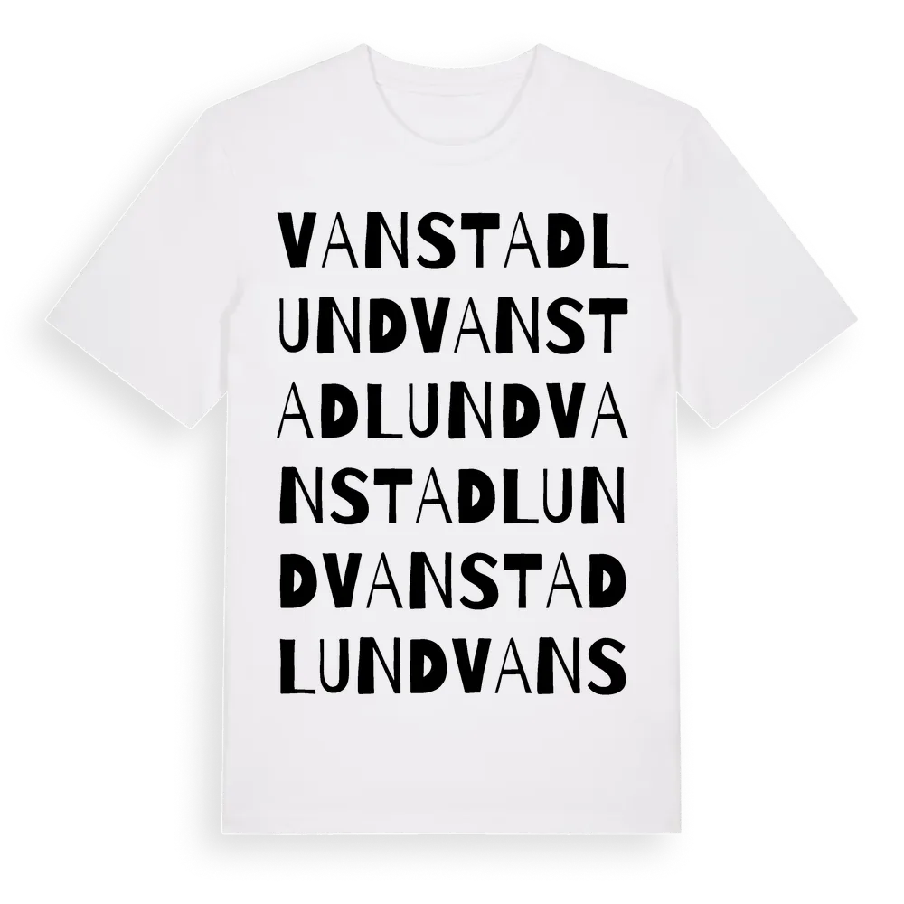 Vanstadlund ordlek t-shirt är inspirerad av Vanstadlund i Skåne län, Sverige. Tröjan är designad för dig som har en speciell koppling till platsen – oavsett om du bor här, har rötterna här eller bara älskar Vanstadlund.