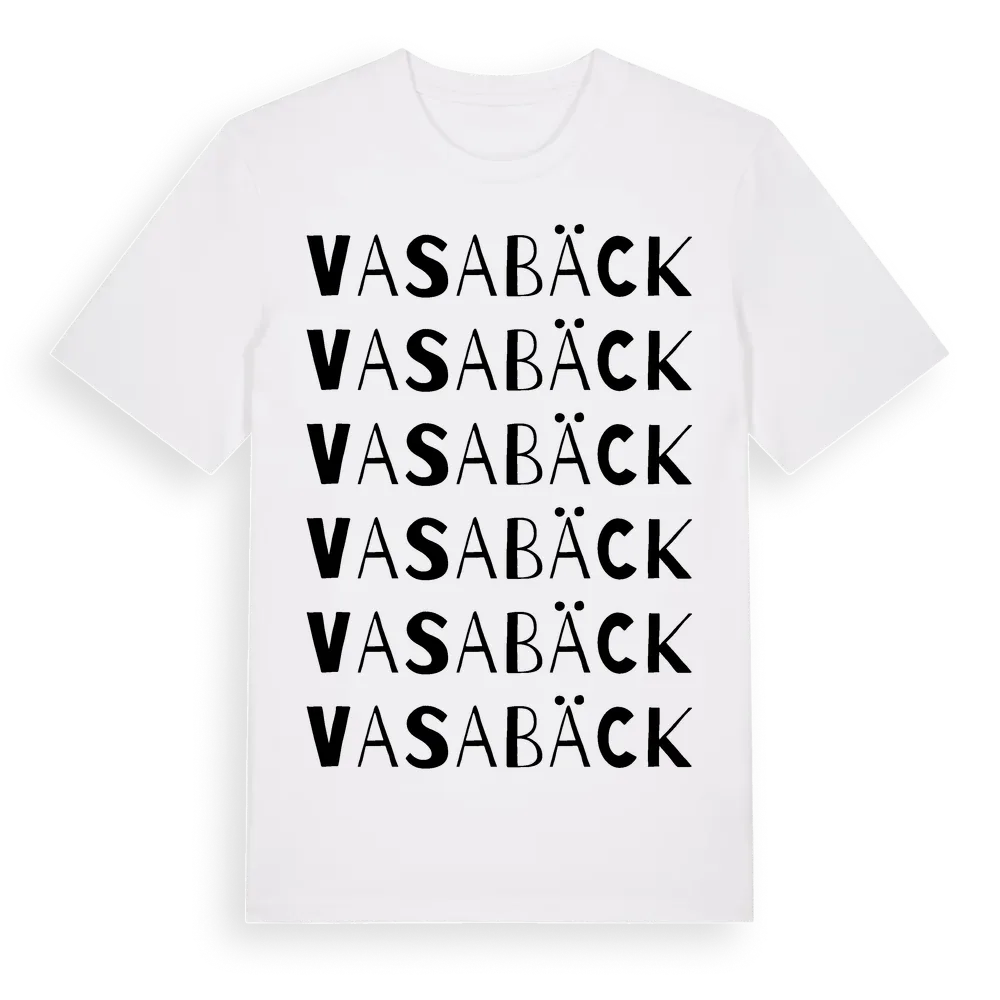 Vasabäck ordlek t-shirt är inspirerad av Vasabäck i Skåne län, Sverige. Tröjan är designad för dig som har en speciell koppling till platsen – oavsett om du bor här, har rötterna här eller bara älskar Vasabäck.