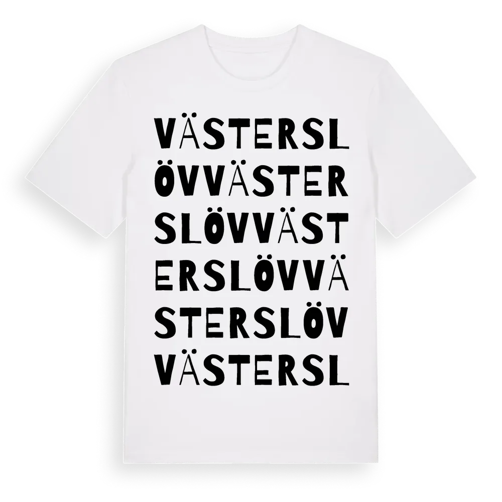 Västerslöv ordlek t-shirt är inspirerad av Västerslöv i Skåne län, Sverige. Tröjan är designad för dig som har en speciell koppling till platsen – oavsett om du bor här, har rötterna här eller bara älskar Västerslöv.