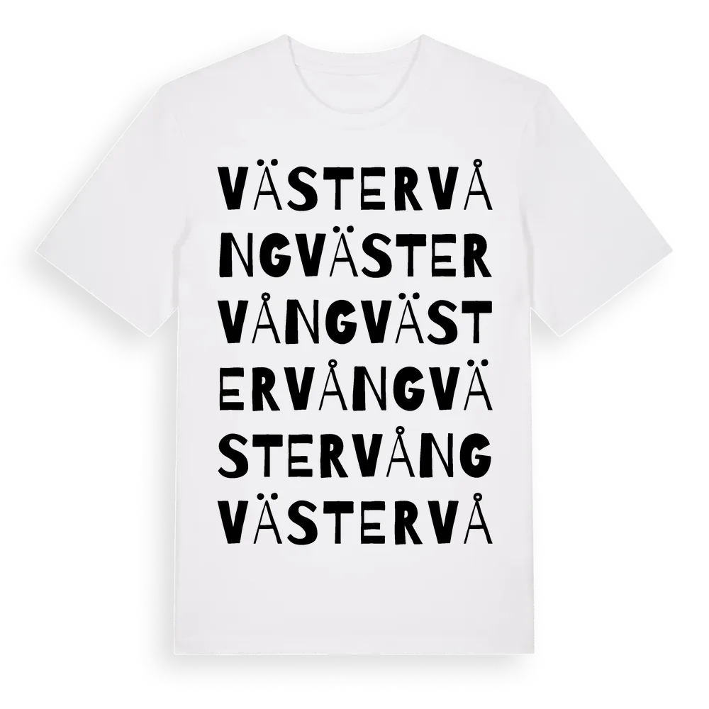 Västervång ordlek t-shirt är inspirerad av byn Västervång i Skåne län, Sverige. Tröjan är designad för dig som har en speciell koppling till platsen – oavsett om du bor här, har rötterna här eller bara älskar Västervång.