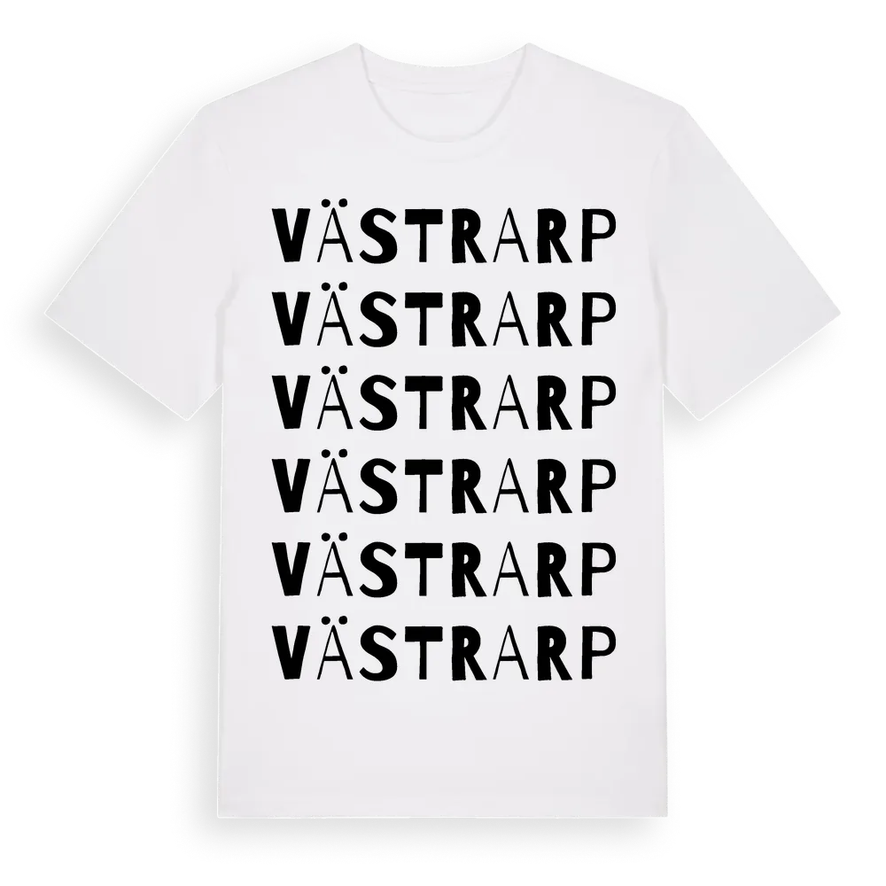 Västrarp ordlek t-shirt är inspirerad av byn Västrarp i Skåne län, Sverige. Tröjan är designad för dig som har en speciell koppling till platsen – oavsett om du bor här, har rötterna här eller bara älskar Västrarp.