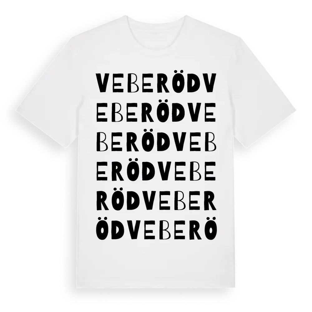 Veberöd ordlek t-shirt är inspirerad av byn Veberöd i Skåne län, Sverige. Tröjan är designad för dig som har en speciell koppling till platsen – oavsett om du bor här, har rötterna här eller bara älskar Veberöd.