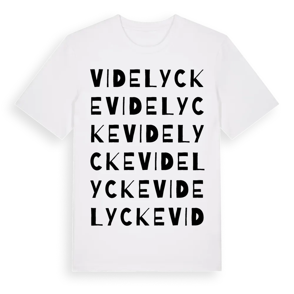 Videlycke ordlek t-shirt är inspirerad av byn Videlycke i Skåne län, Sverige. Tröjan är designad för dig som har en speciell koppling till platsen – oavsett om du bor här, har rötterna här eller bara älskar Videlycke.