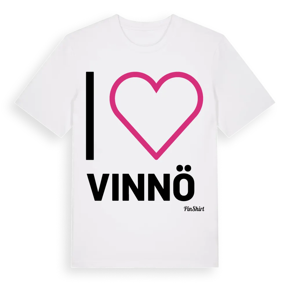 Jag älskar Vinnö t-shirt stort tryck är inspirerad av byn Vinnö i Skåne län, Sverige. Tröjan är designad för dig som har en speciell koppling till platsen – oavsett om du bor här, har rötterna här eller bara älskar Vinnö.
