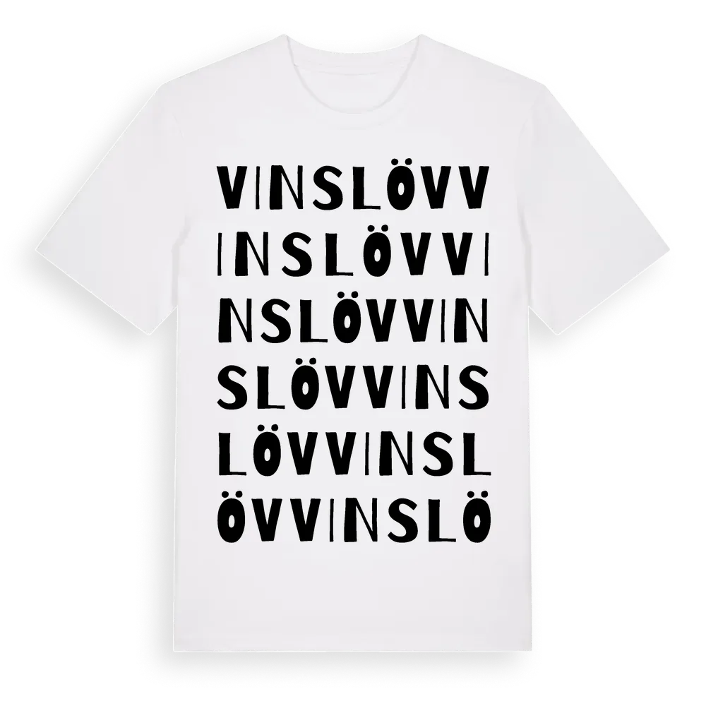 Vinslöv ordlek t-shirt är inspirerad av byn Vinslöv i Skåne län, Sverige. Tröjan är designad för dig som har en speciell koppling till platsen – oavsett om du bor här, har rötterna här eller bara älskar Vinslöv.