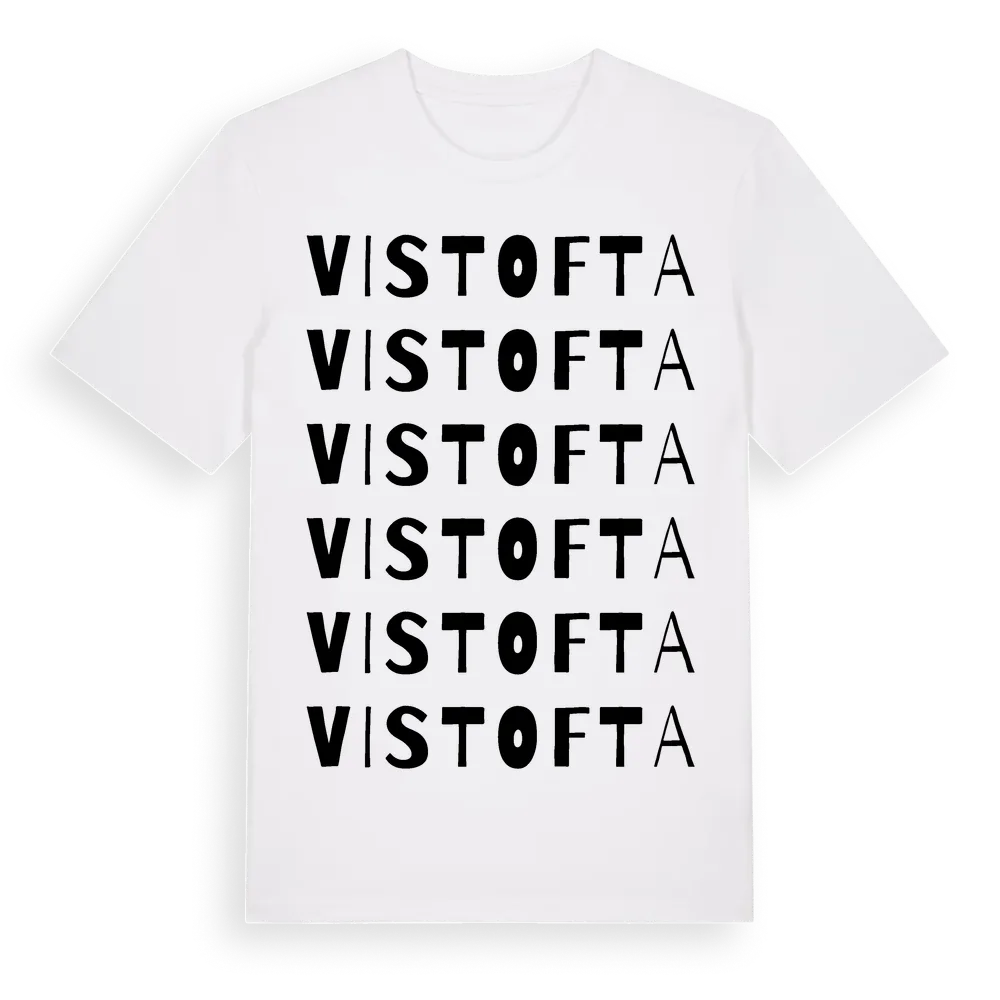 En ordlek byggd på Vistoftas namn. Subtilt och klurig – ett motiv som bara de som verkligen känner platsen fullt ut förstår. Premium bomull, unisex – från Vistofta i Skåne län.