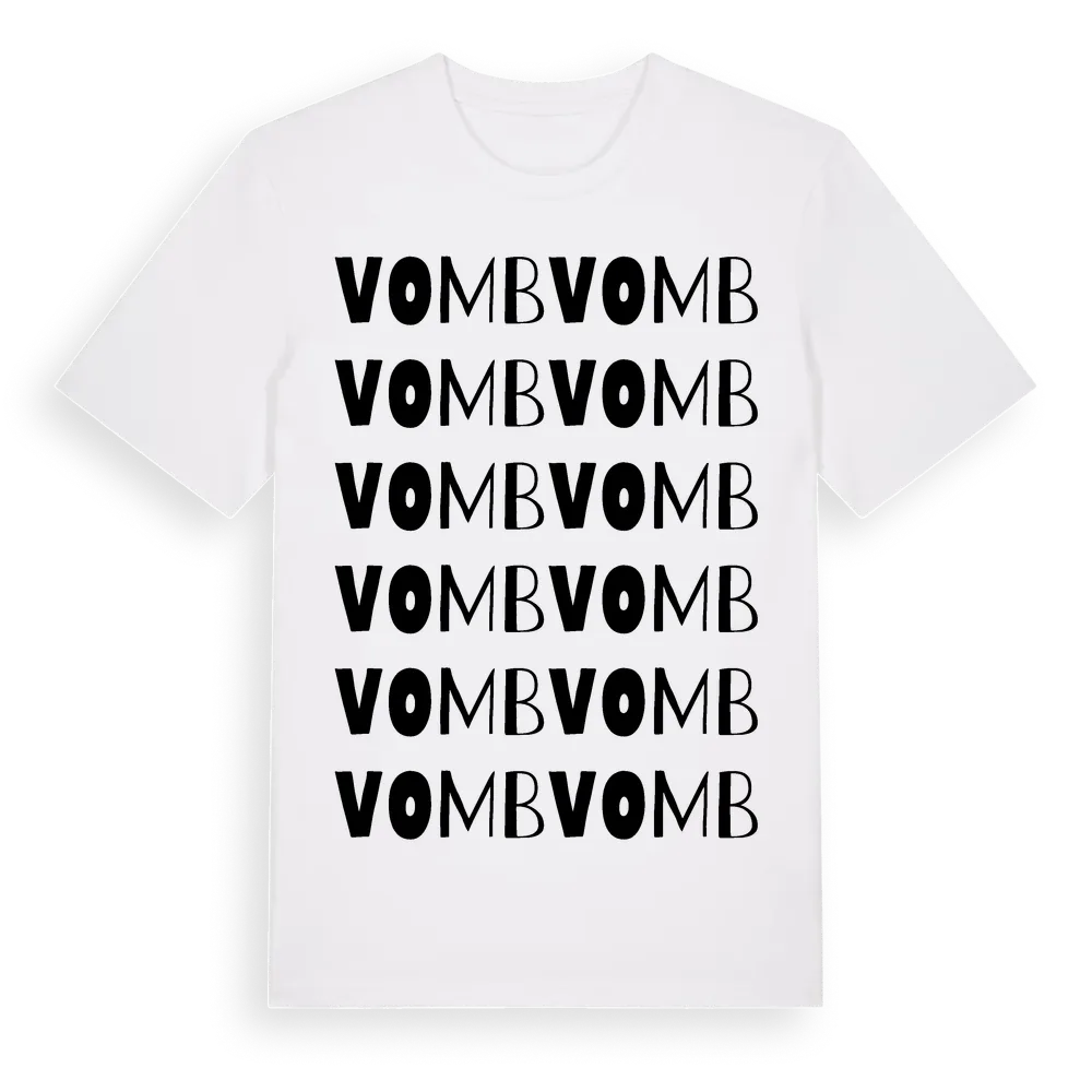 En ordlek byggd på Vombs namn. Subtilt och klurig – ett motiv som bara de som verkligen känner platsen fullt ut förstår. Premium bomull, unisex – från byn Vomb i Skåne län.