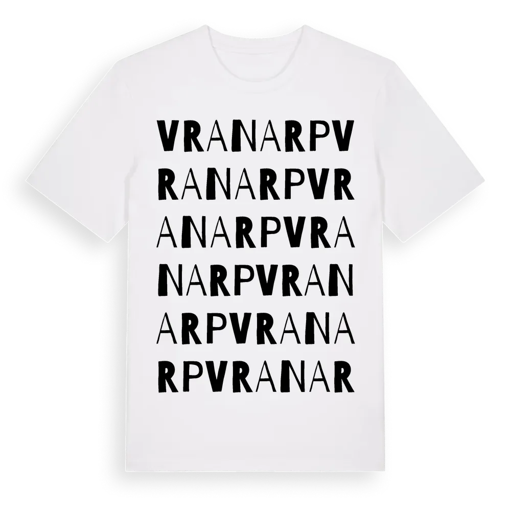 Vranarp ordlek t-shirt är inspirerad av byn Vranarp i Skåne län, Sverige. Tröjan är designad för dig som har en speciell koppling till platsen – oavsett om du bor här, har rötterna här eller bara älskar Vranarp.