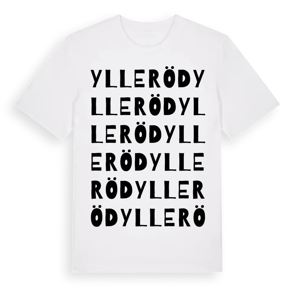 Ylleröd ordlek t-shirt är inspirerad av byn Ylleröd i Skåne län, Sverige. Tröjan är designad för dig som har en speciell koppling till platsen – oavsett om du bor här, har rötterna här eller bara älskar Ylleröd.