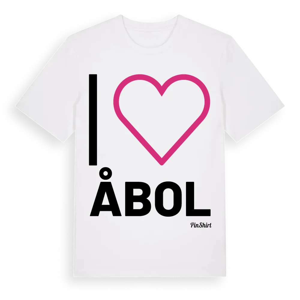 Det klassiska "I ❤ Åbol"-motivet i stort format som täcker hela bröstet. För dig som vill visa kärleken till Åbol på riktigt. Premium bomull, unisex – från Åbol i Södermanlands län.