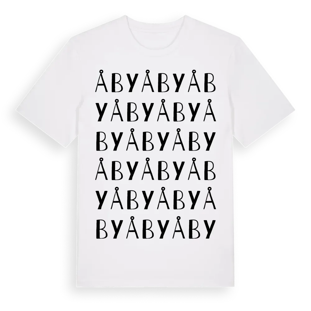 Åby ordlek t-shirt är inspirerad av Åby i Södermanlands län, Sverige. Tröjan är designad för dig som har en speciell koppling till platsen – oavsett om du bor här, har rötterna här eller bara älskar Åby.
