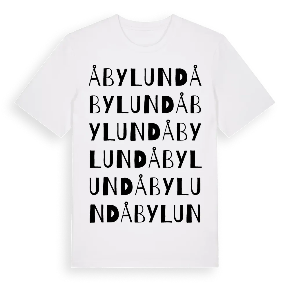 Åbylund ordlek t-shirt är inspirerad av Åbylund i Södermanlands län, Sverige. Tröjan är designad för dig som har en speciell koppling till platsen – oavsett om du bor här, har rötterna här eller bara älskar Åbylund.
