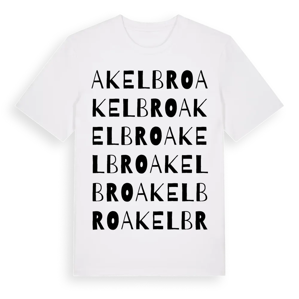 Akelbro ordlek t-shirt är inspirerad av Akelbro i Södermanlands län, Sverige. Tröjan är designad för dig som har en speciell koppling till platsen – oavsett om du bor här, har rötterna här eller bara älskar Akelbro.