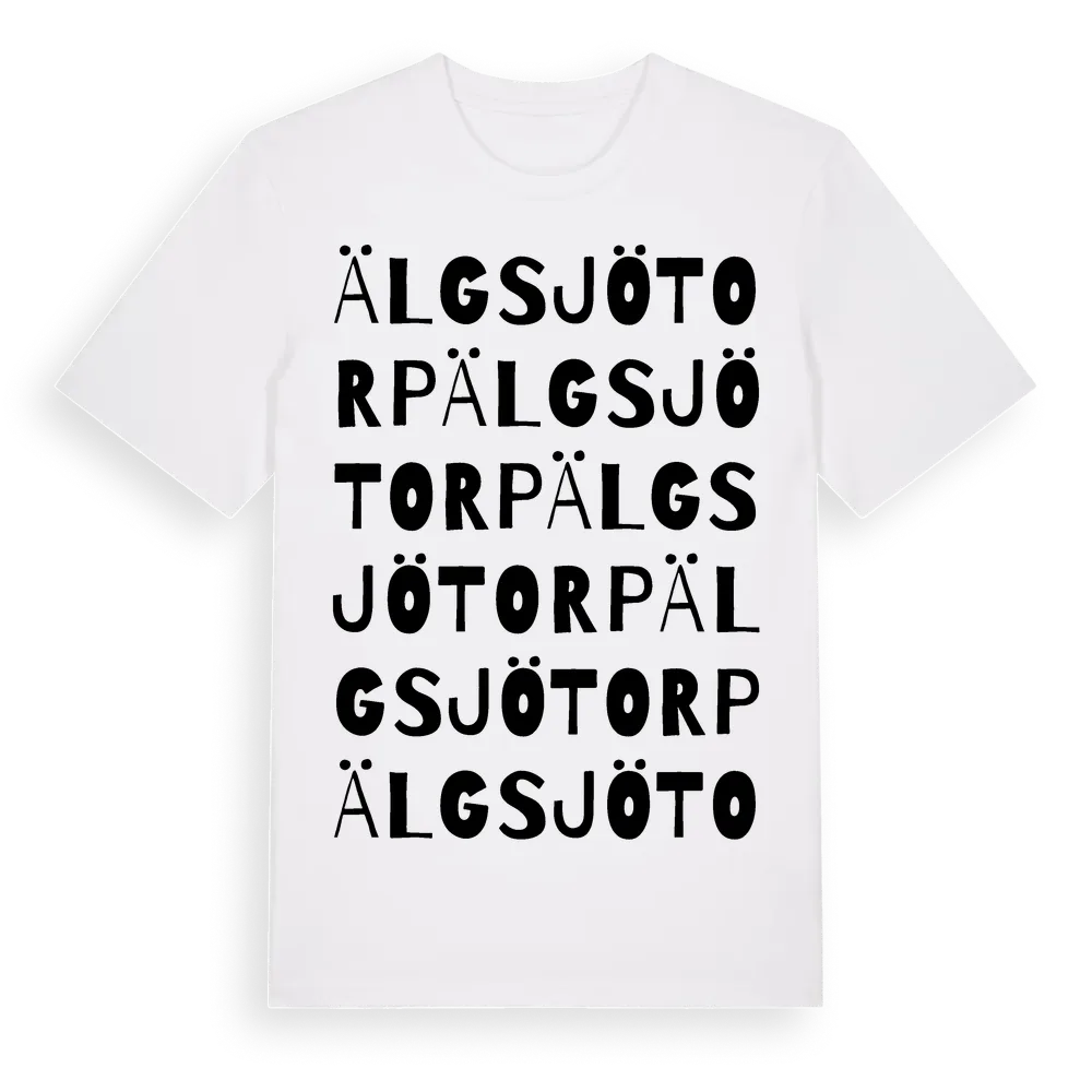 Älgsjötorp ordlek t-shirt är inspirerad av Älgsjötorp i Södermanlands län, Sverige. Tröjan är designad för dig som har en speciell koppling till platsen – oavsett om du bor här, har rötterna här eller bara älskar Älgsjötorp.