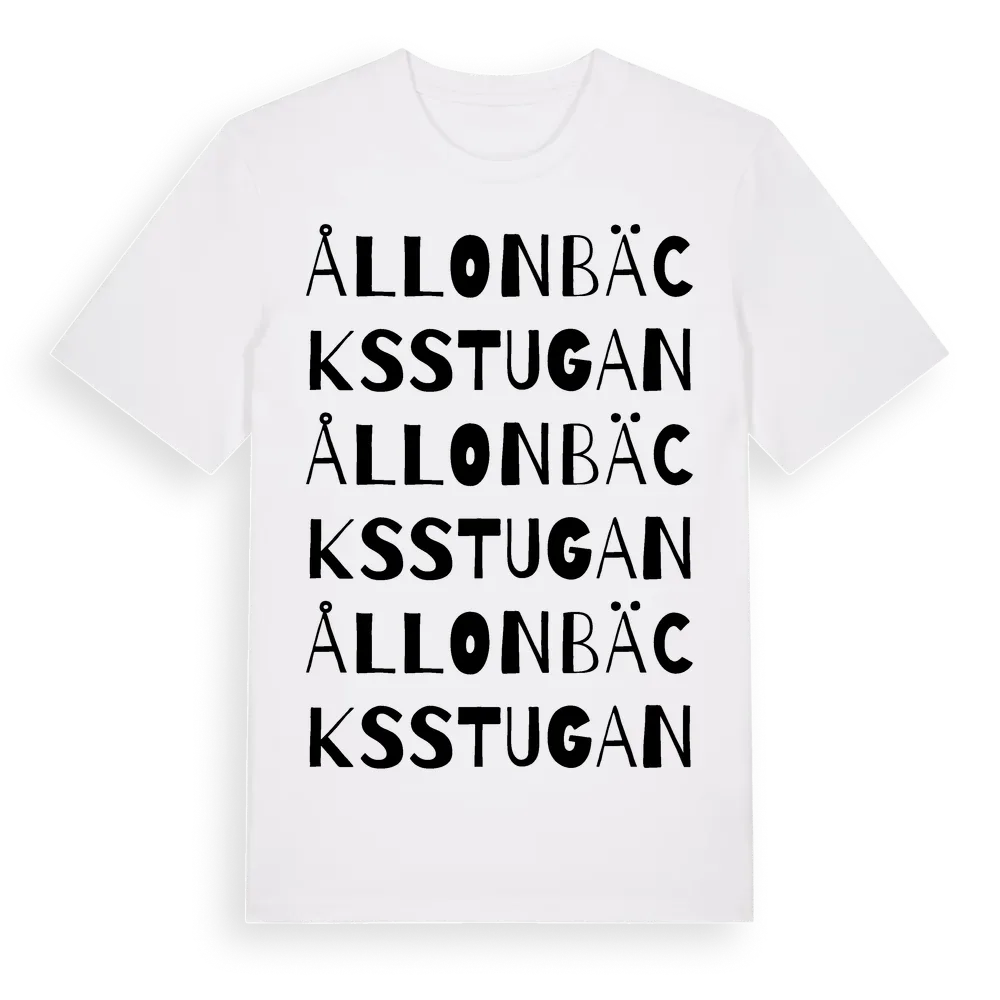 Ållonbäcksstugan ordlek t-shirt är inspirerad av Ållonbäcksstugan i Södermanlands län, Sverige. Tröjan är designad för dig som har en speciell koppling till platsen – oavsett om du bor här, har rötterna här eller bara älskar Ållonbäcksstugan.