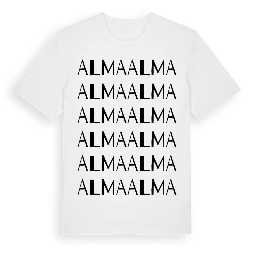 Alma ordlek t-shirt är inspirerad av Alma i Södermanlands län, Sverige. Tröjan är designad för dig som har en speciell koppling till platsen – oavsett om du bor här, har rötterna här eller bara älskar Alma.