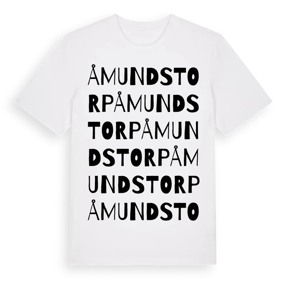 Åmundstorp ordlek t-shirt är inspirerad av Åmundstorp i Södermanlands län, Sverige. Tröjan är designad för dig som har en speciell koppling till platsen – oavsett om du bor här, har rötterna här eller bara älskar Åmundstorp.